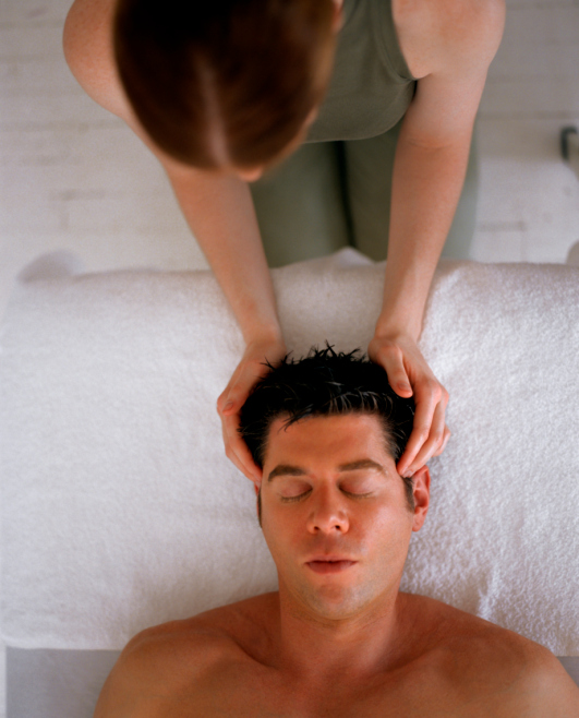 Vleže nebo vsedě, záleží na problému, masáž provádíme velmi šetrně bez prudkých hmatů.